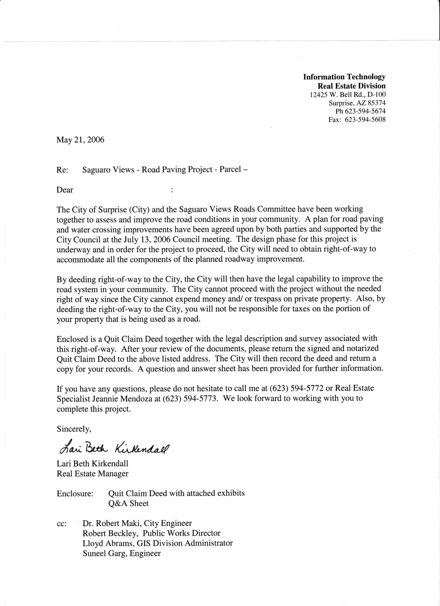 No roads are maintained. Due to City of Surprise letter dated Oct 3 2019